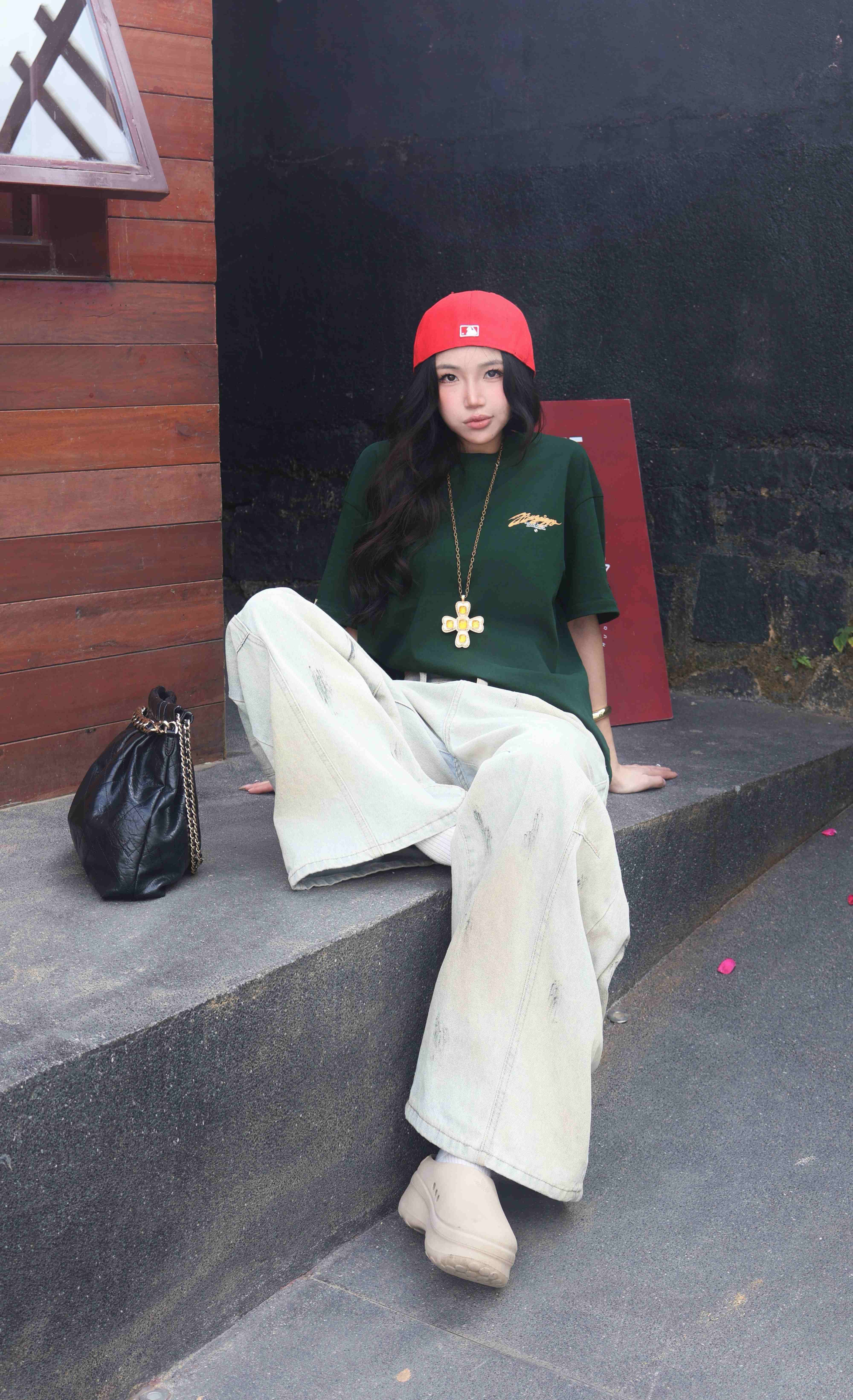 Blaze Tee – in lụa typo trước ngực và sau lưng, kết hợp logo thêu nổi bên tay áo, tạo điểm nhấn nhận diện đặc trưng.