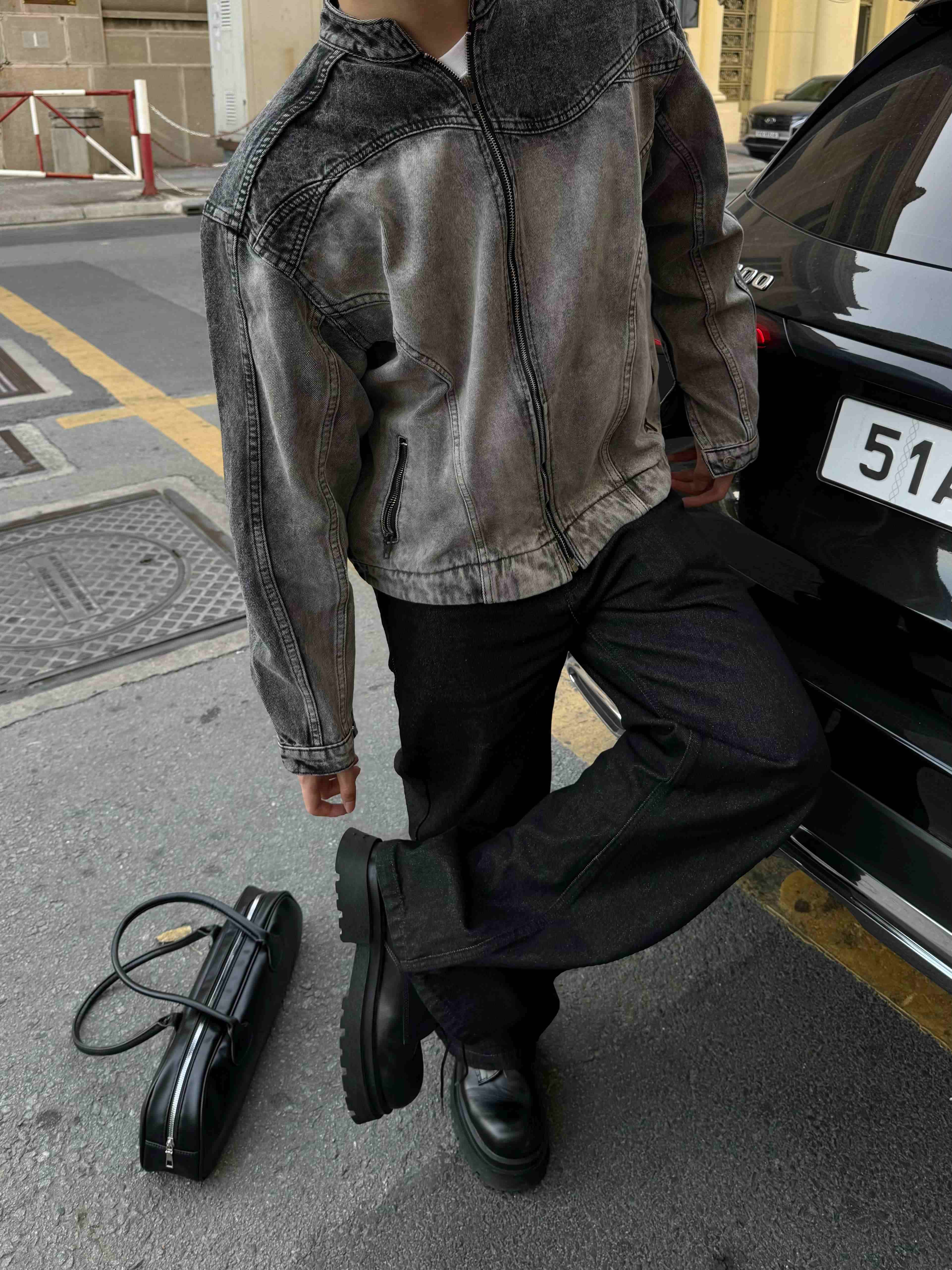 CONTOURED DENIM JACKET - GREY