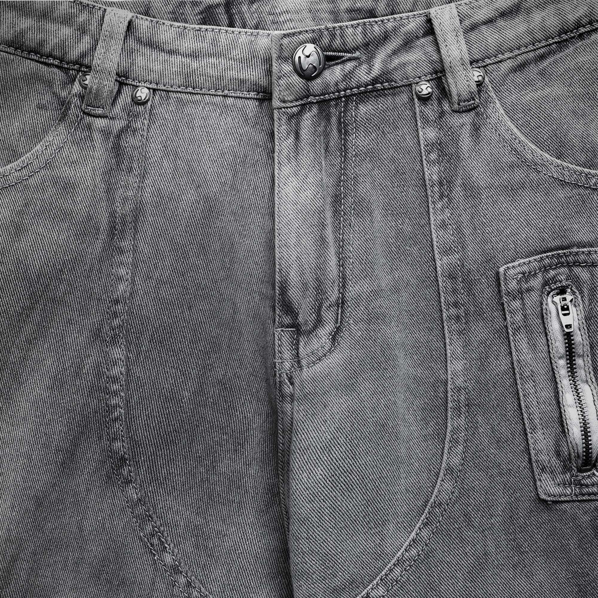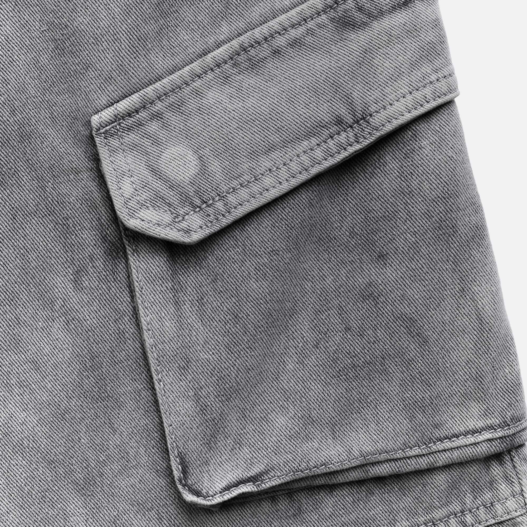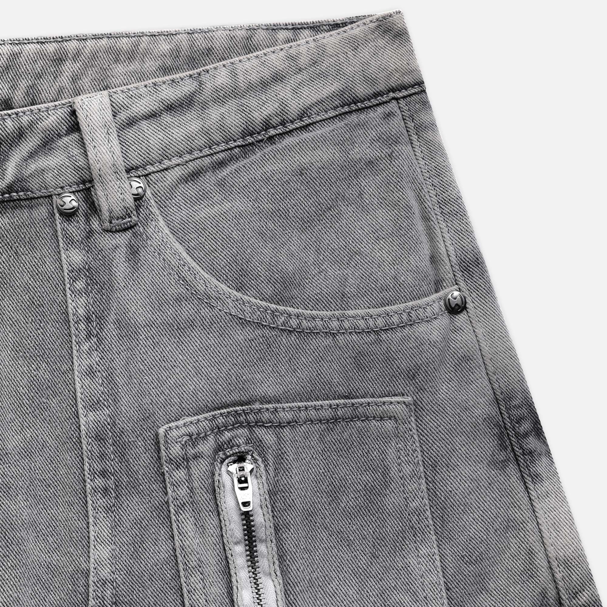DUST CARGO JORTS – Jorts denim có túi hộp hai bên, kết hợp chi tiết may đắp và tag da NOW.
