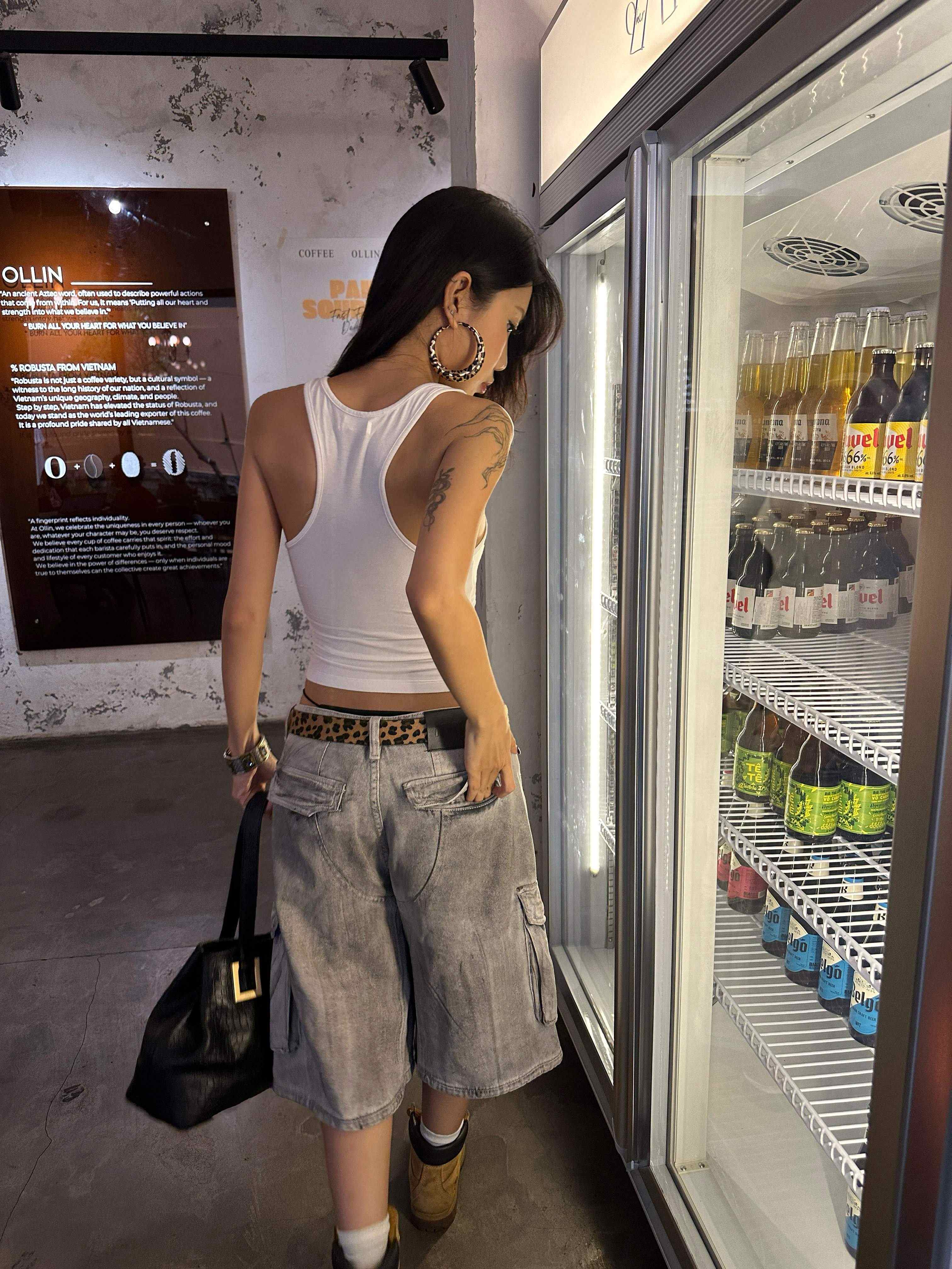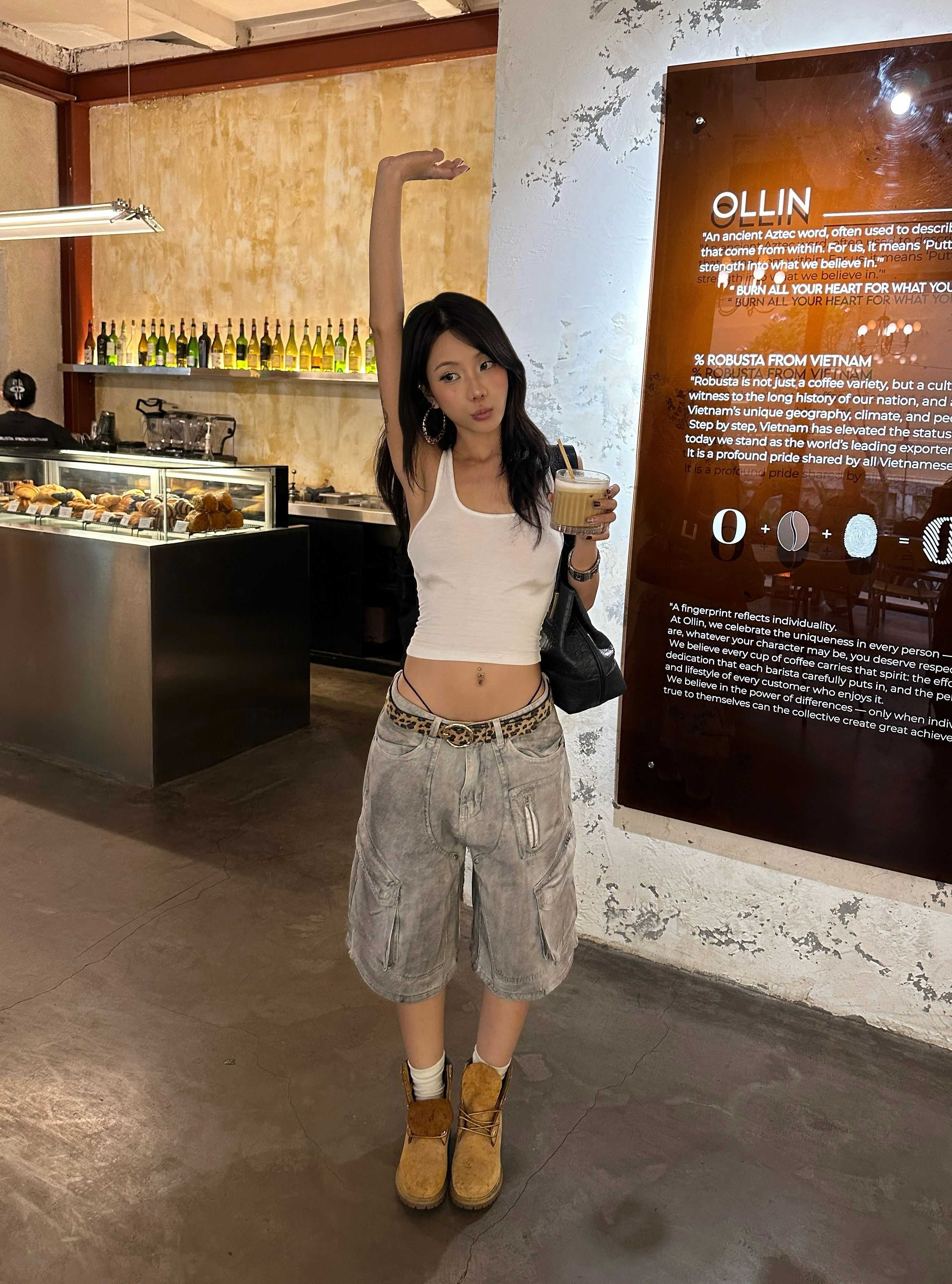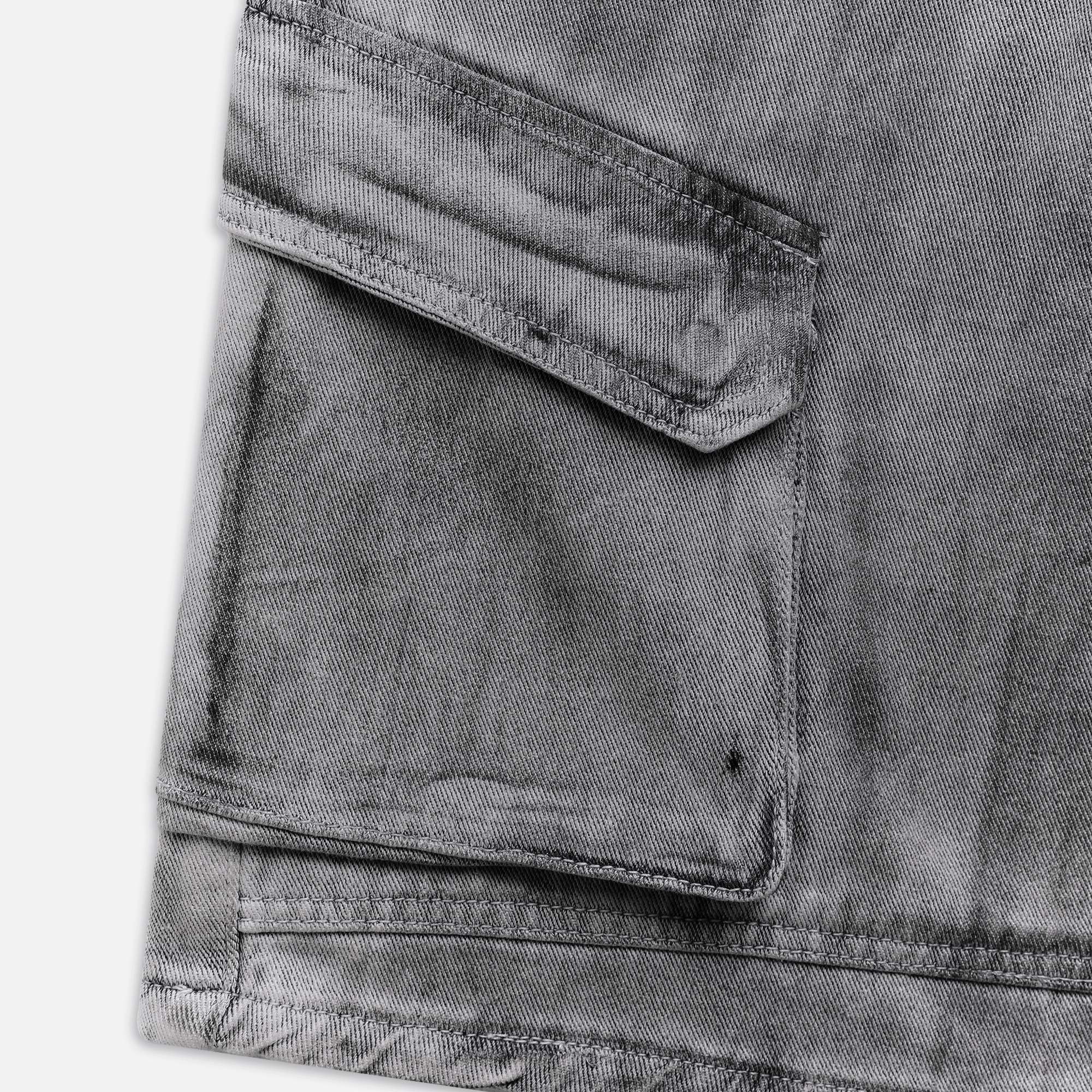 DUST CARGO JORTS – Jorts denim có túi hộp hai bên, kết hợp chi tiết may đắp và tag da NOW.