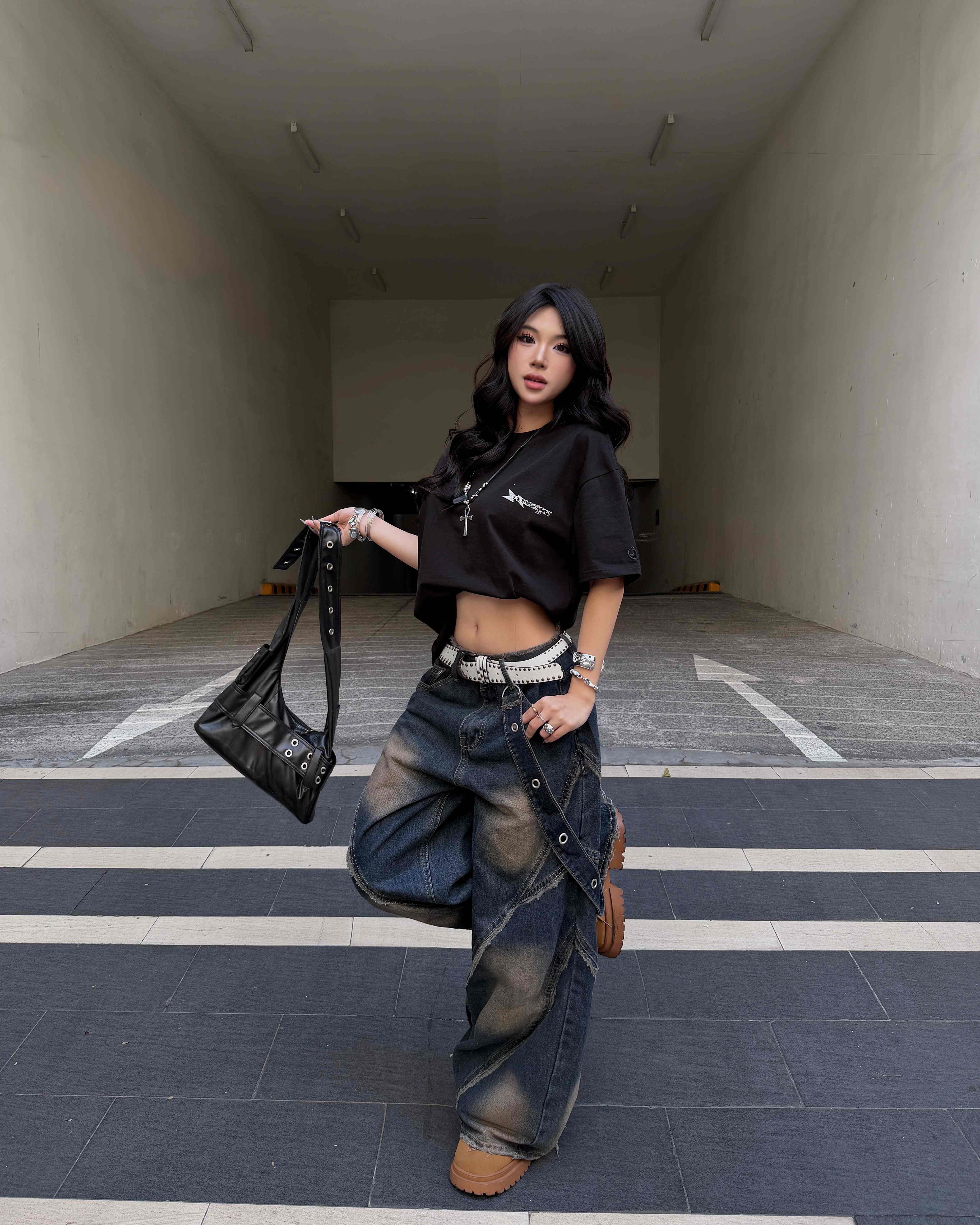 Glitter Tee – in lụa kết hợp in nhũ typo trước ngực và sau lưng. Chi tiết logo thêu nổi bên tay áo tạo điểm nhấn nhận diện đặc trưng của NOW.