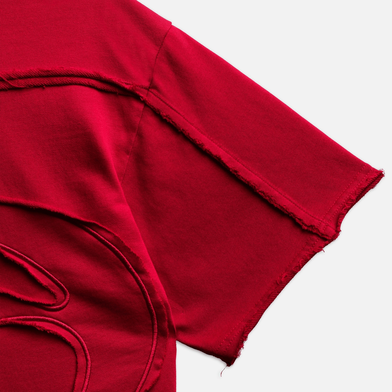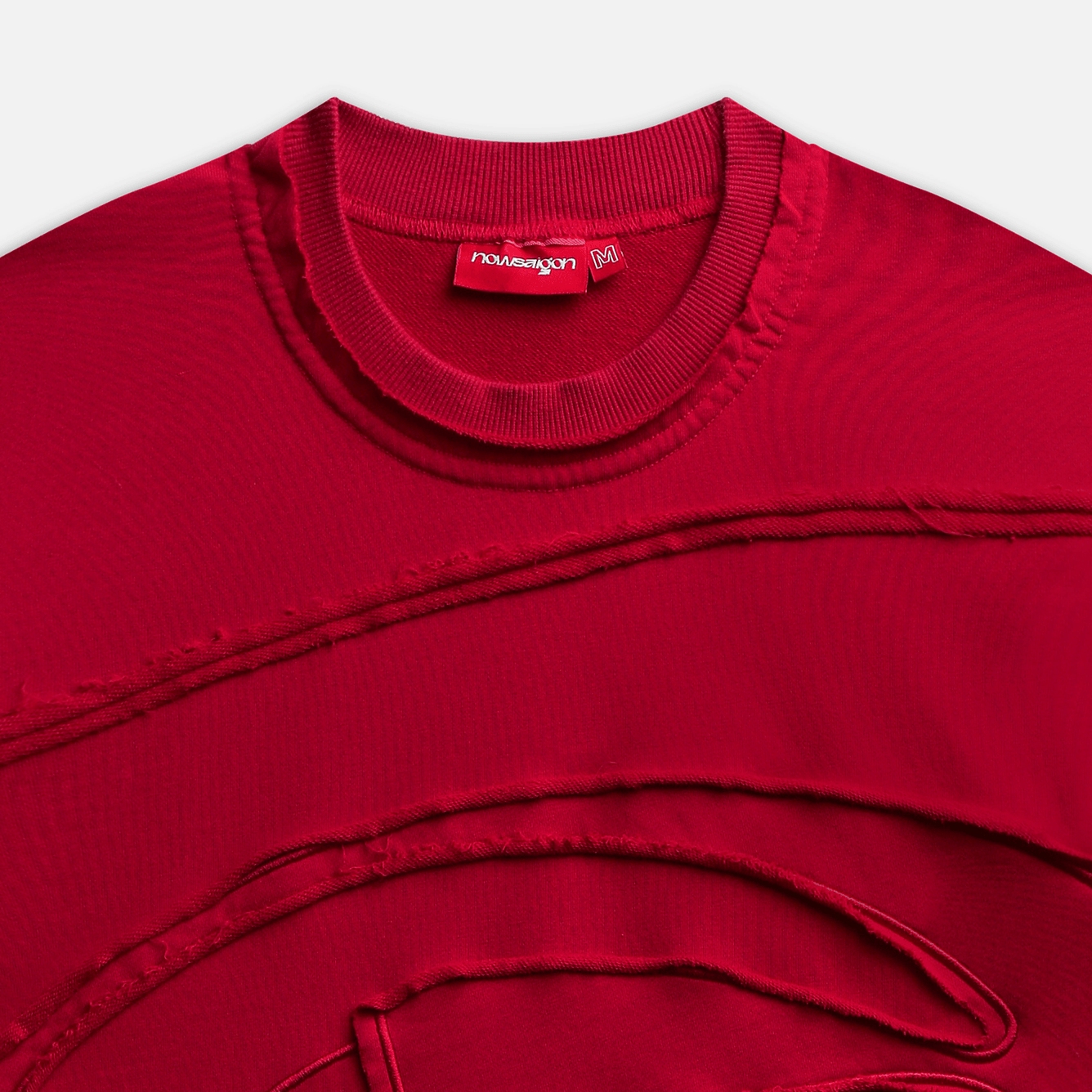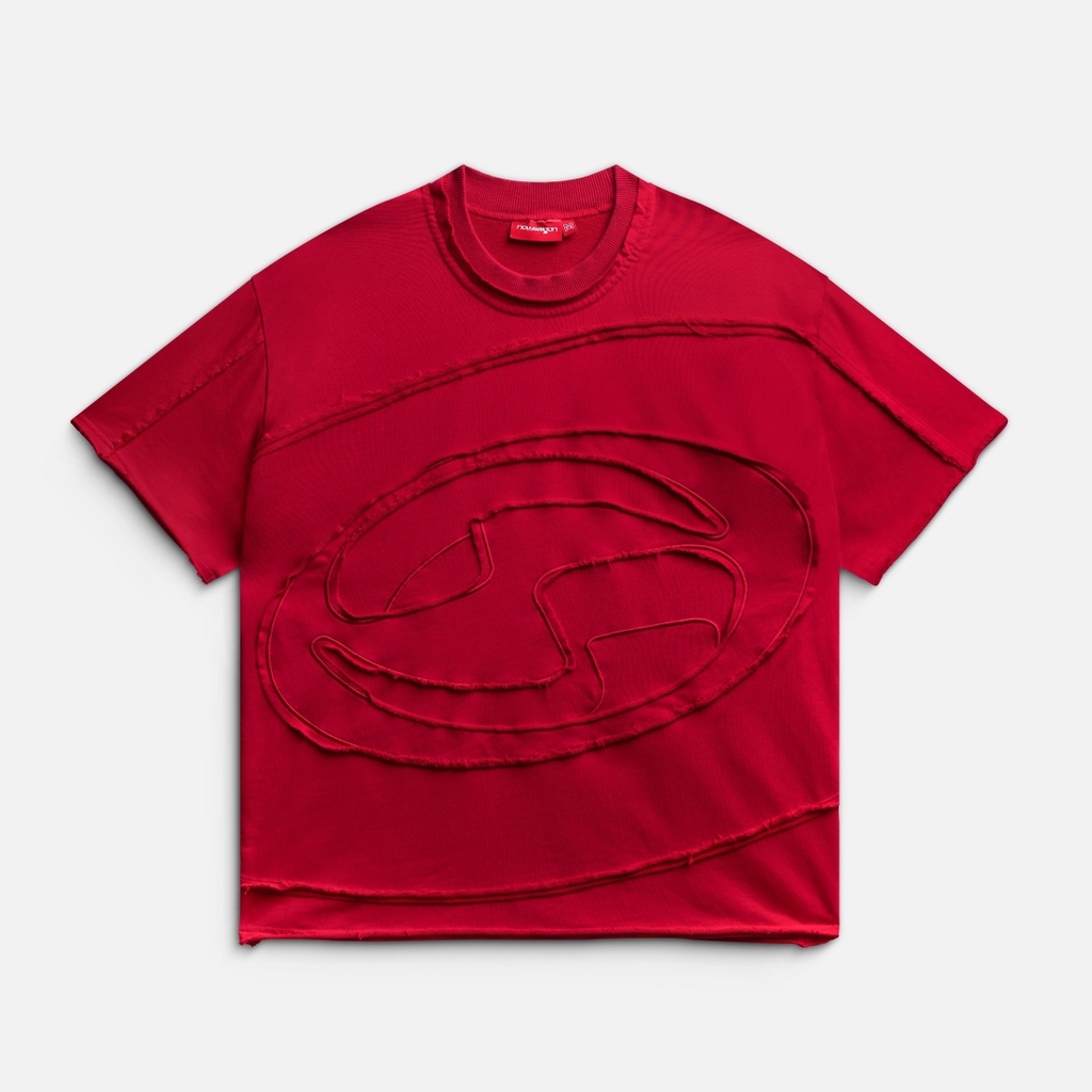 PATCH TEE – Áo thun cotton đắp vải logo NOW kết hợp mài rách viền ở thân trước và in dập nổi thân sau..